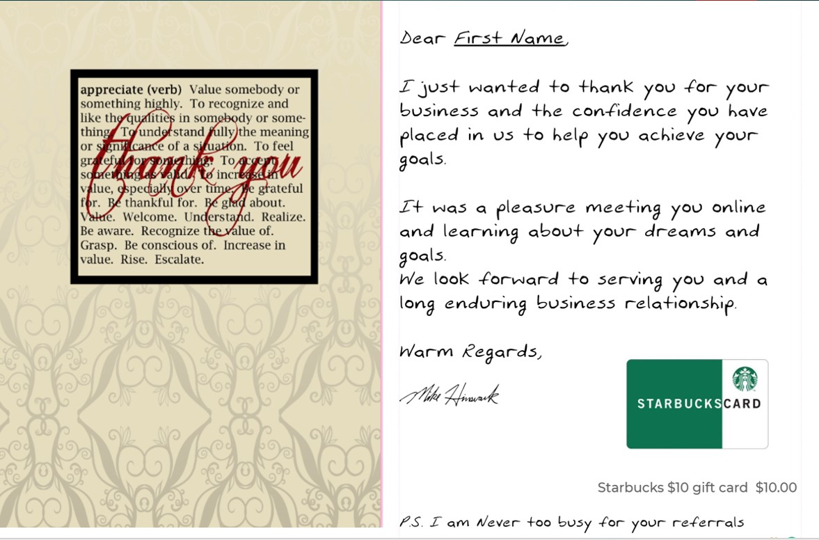 Cool Creative Gifts mailed to clients who refer you a name to call or book to mail “Pop-bys”